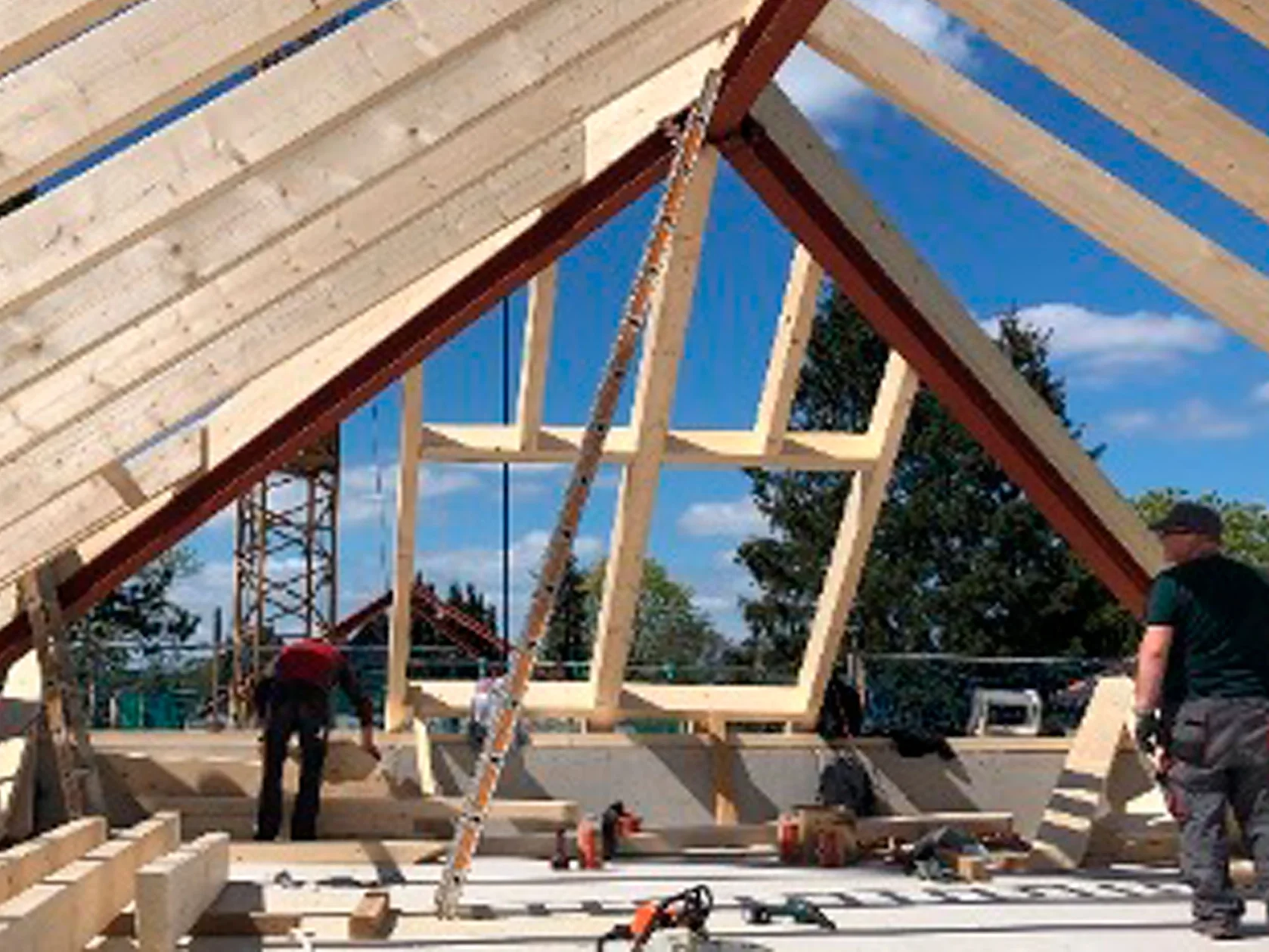 Anspruchsvolles Walmdach mit einer stützenfreien Konstruktion in ökologischer Bauweise.