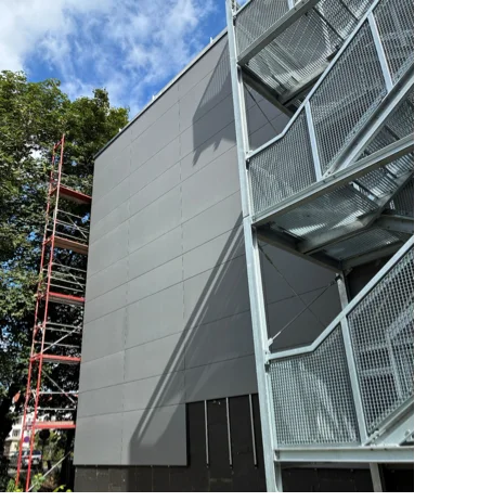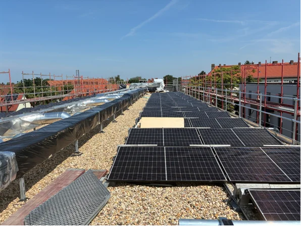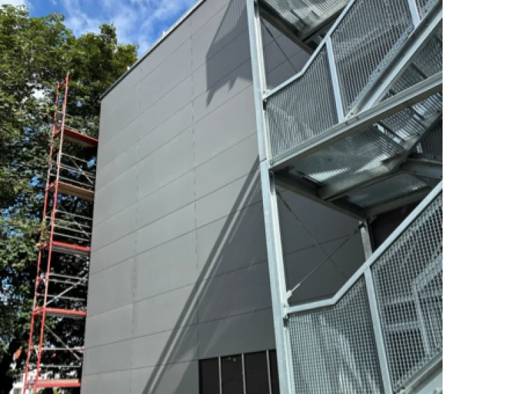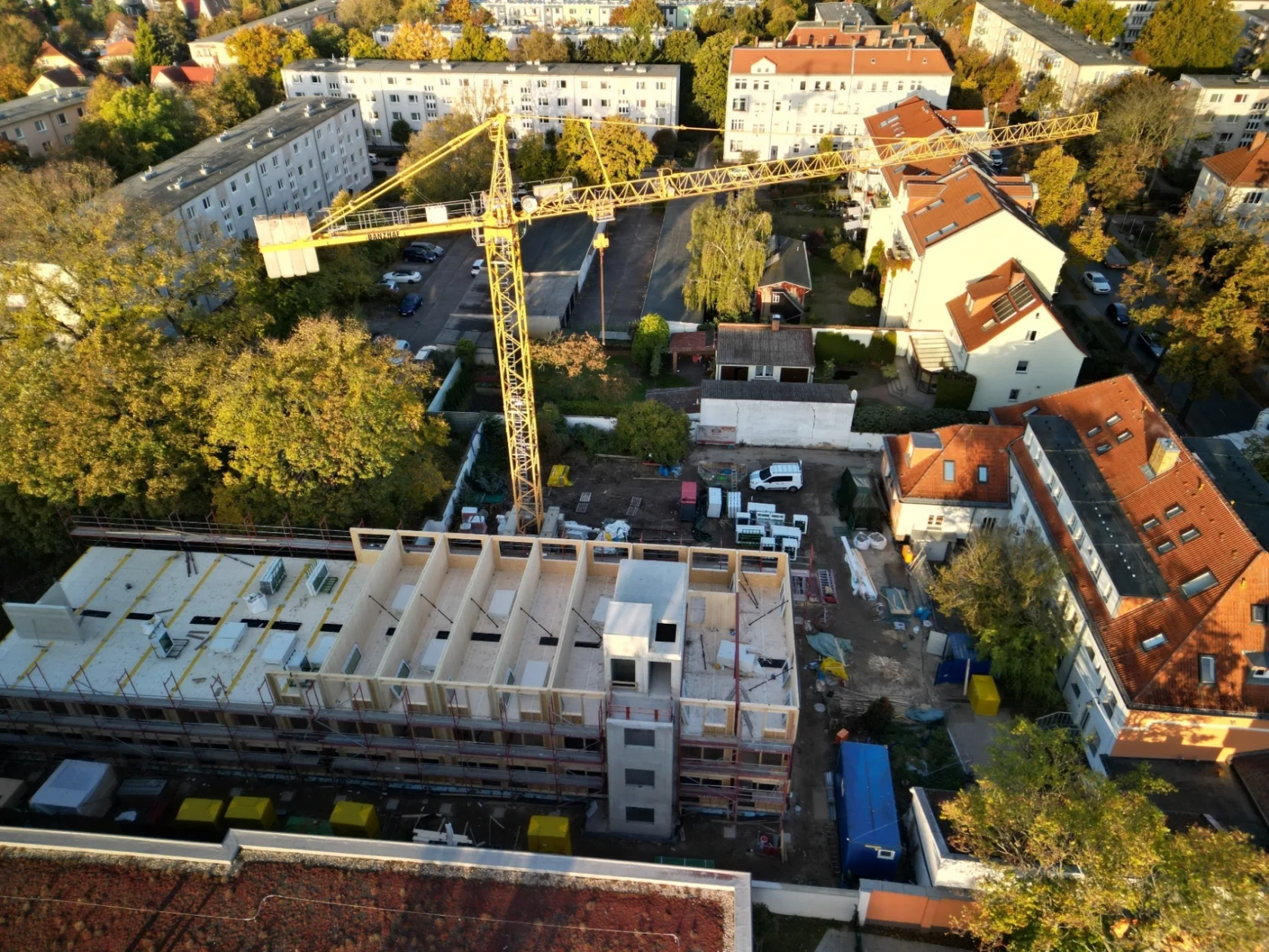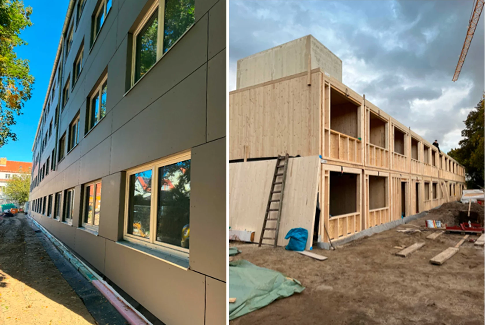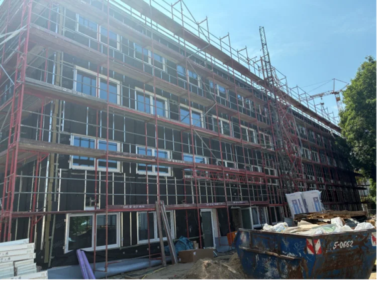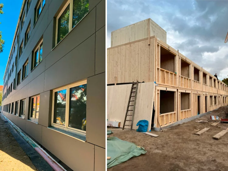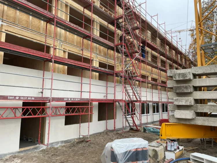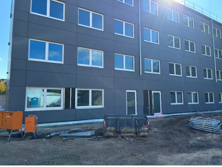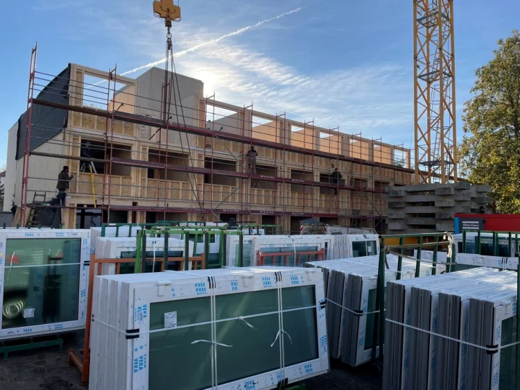 Für die Universal-Stiftung Helmut Ziegner errichtete die Hirsch + Lorenz Holzbau GmbH in der zweiten Jahreshälfte 2024 den Holzrohbau. Innerhalb von nur sechs Wochen wurden 5.500 m² Brettsperrholz und 650 m² Holzrahmenbau präzise und termingerecht fertiggestellt. Im Anschluss folgten die Dachabdichtung und Fassadenarbeiten.