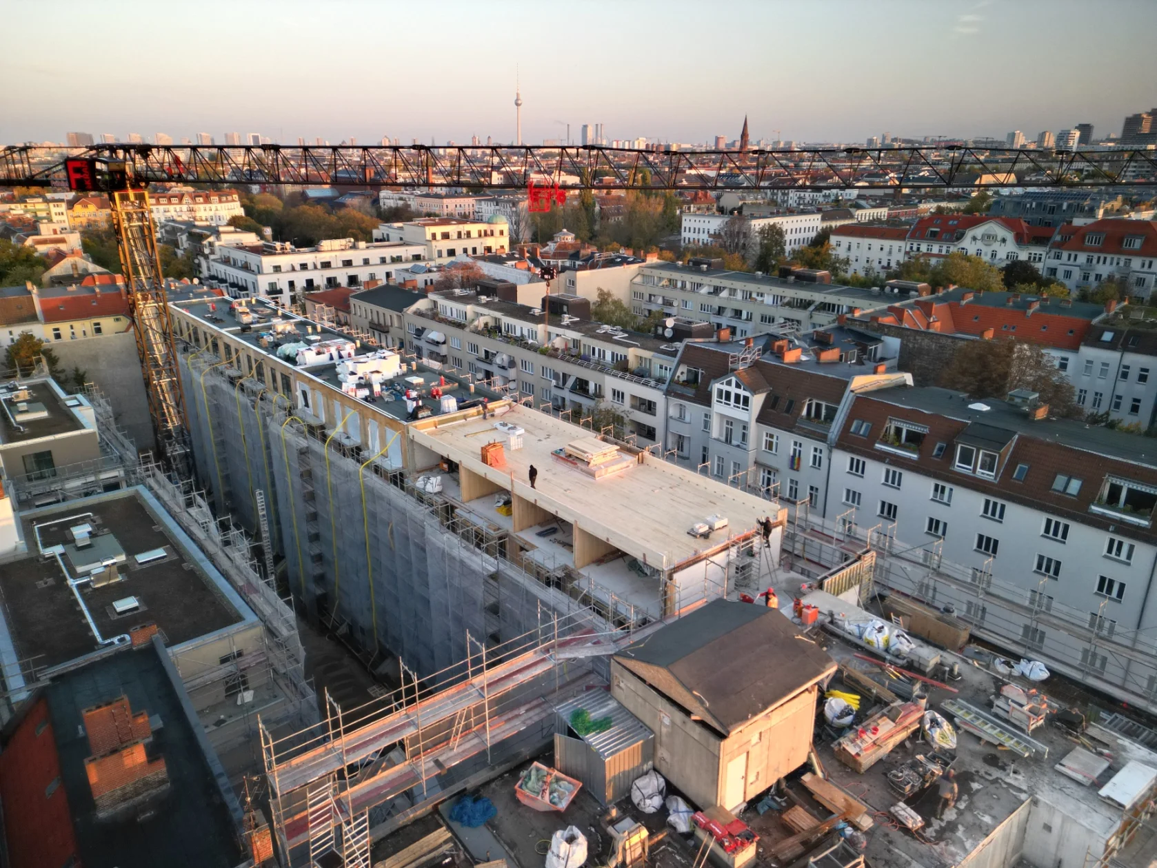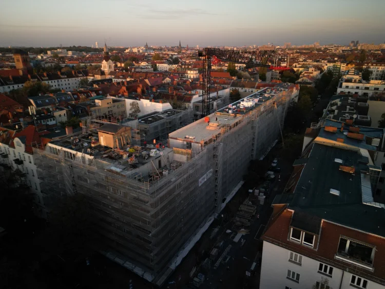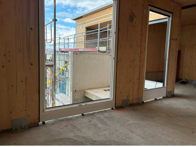 Zweistöckige Aufstockung und zugleich ästhetische, nachhaltige Aufwertung – mit rund 3.600 m² Brettsperrholzwänden und -decken, davon etwa 870 m² Holz-Beton-Verbunddecken auf ein Bestandsgebäude. Dieses Projekt wurde in Zusammenarbeit mit der Hirsch + Lorenz Ingenieurbau GmbH realisiert.