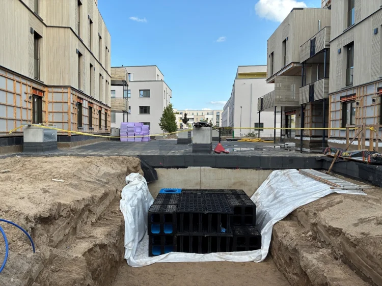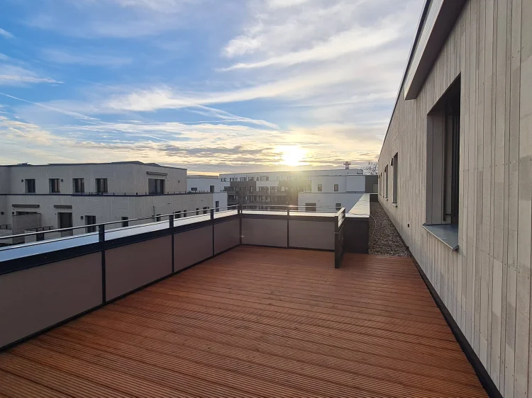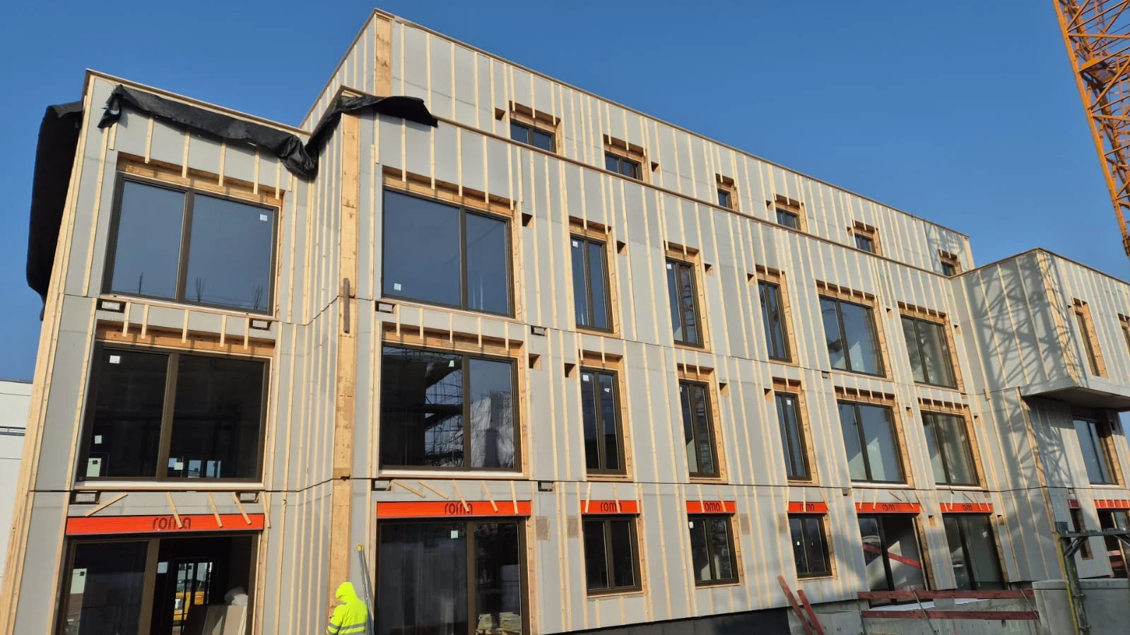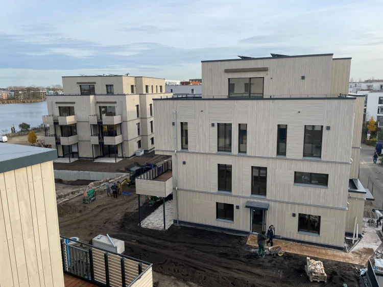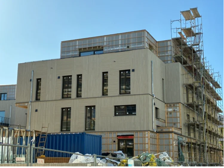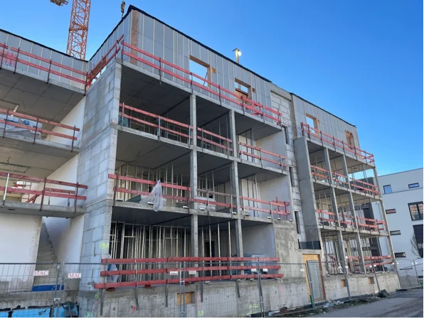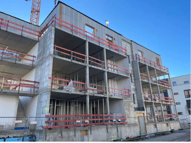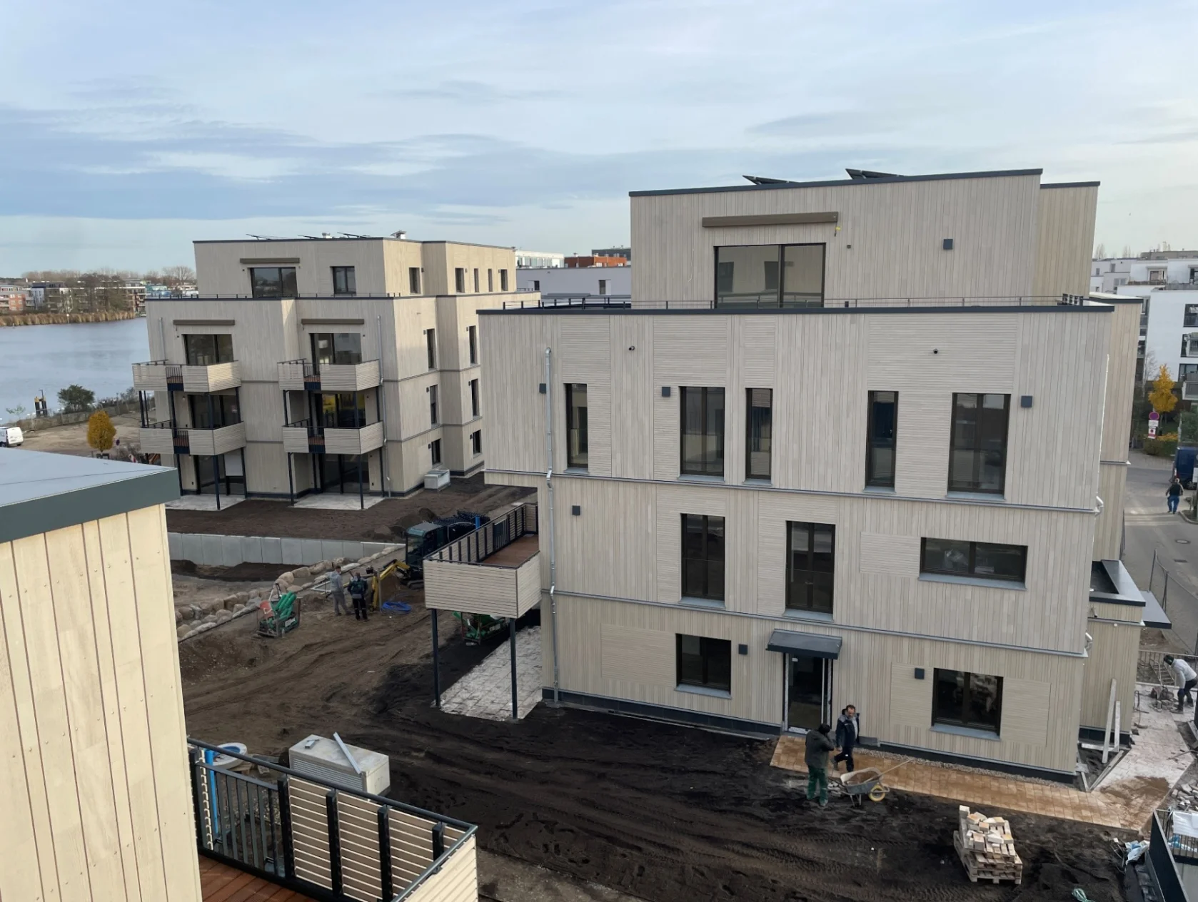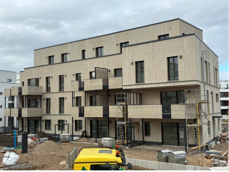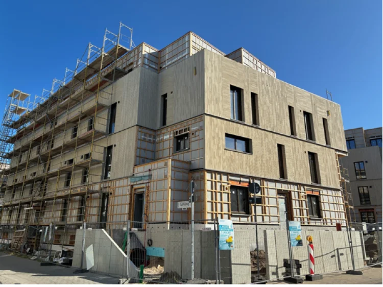 Die Häuser wurden in Massivbauweise errichtet, das Staffelgeschoss in Holzbauweise. Die Außenfassaden des Gebäudes wurden als nichttragende Holzrahmenbauwände ausgeführt. Im Auftragsumfang mit enthalten waren Fensteranlagen als Holz-Alu- Elemente und die Dachabdichtungsanlagen.