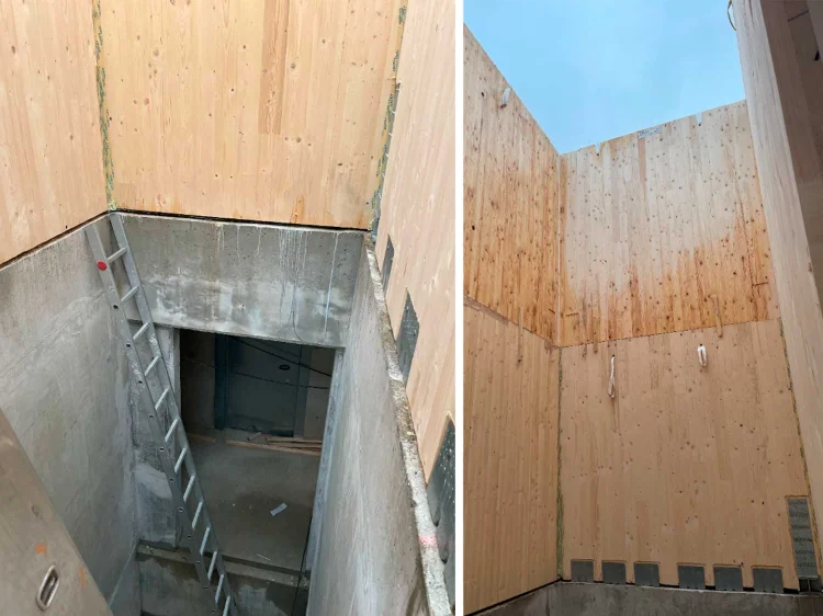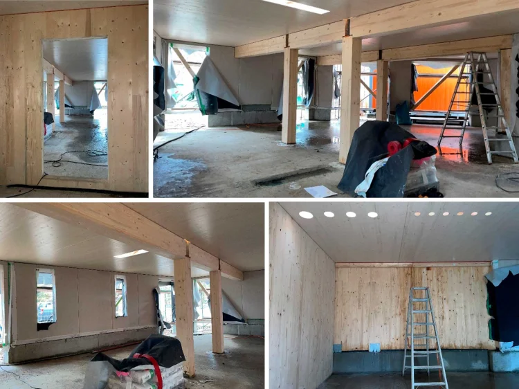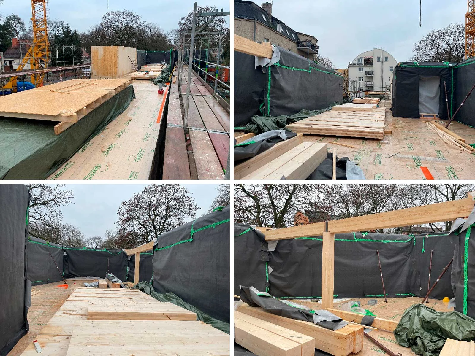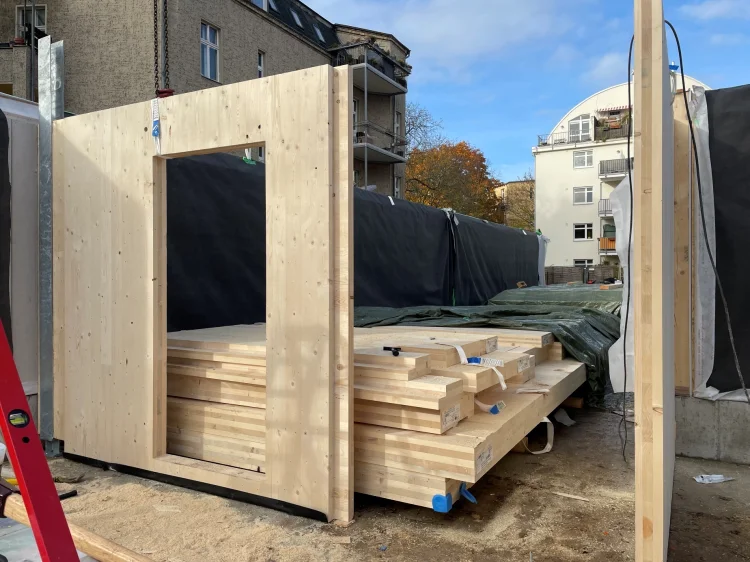 Hirsch und Lorenz – Holzbau‘s, Leistungsumfang sind neben den Holzbauarbeiten auch Stahlbauarbeiten, Dachdeckungs- und Dachabdichtungsarbeiten, Wärmedämmverbundsysteme, Putzarbeiten, Fenster – Außentüren, sowie Betonarbeiten Laubengang und Treppenhaus und Stahlkonstruktion Balkone und Ausbildung eines Gründachs.